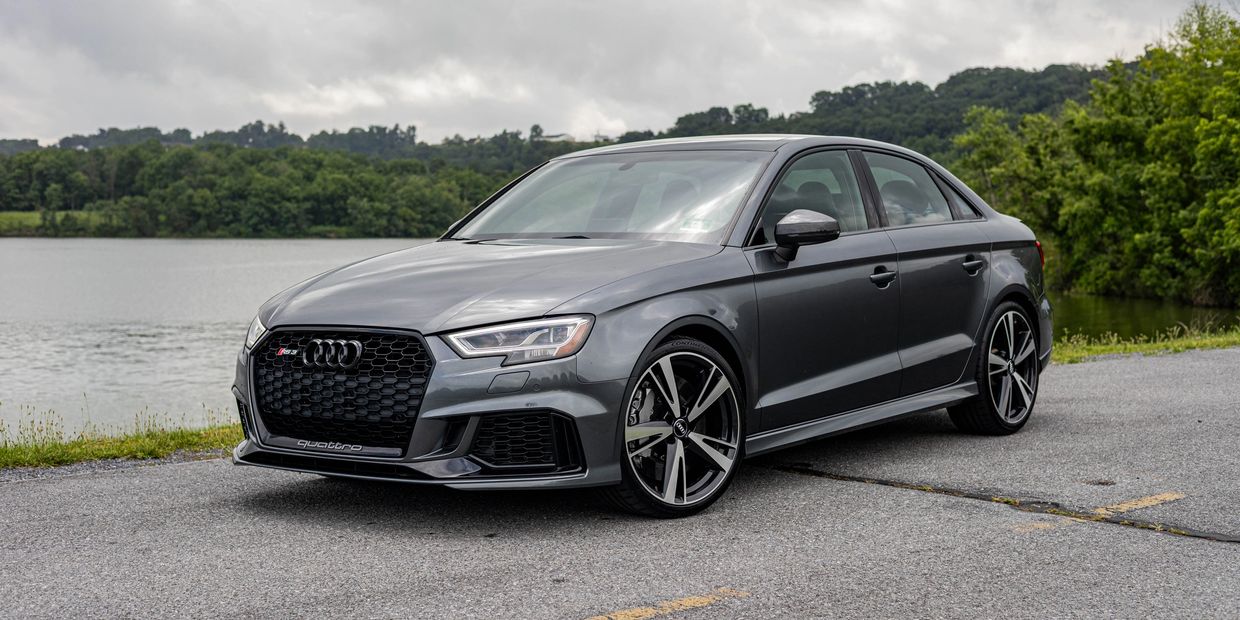 2018 Audi RS3 in beautiful Daytona Gray Pearl Effect with Black w/ Crescendo Red stitching. This 8V RS3 is optioned nicely with the following: Dynamic Plus Package (RS fixed sport suspension, Carbon fiber engine cover, Front ceramic brakes and Direct TPMS), Technology Package (MMI nav with touch, Audi virtual cockpit and B&O sound), Dynamic Package (Sport exhaust system with black tips), Black Optic Package (19" Black finish staggered wheels, High gloss mirrors/rear lip spoiler/exterior kit), RS Design Package (Leatherette covered door armrests, Alcantara knee pads, Interior storage package with rear USB, Red air vents, RS floor mats and Red/Black seatbelts) along with RS carbon inlays.